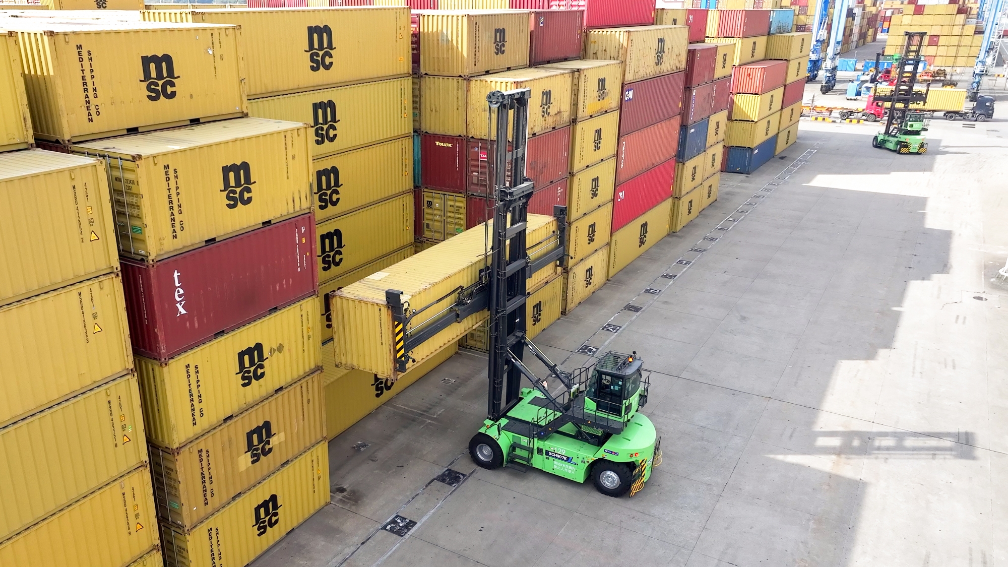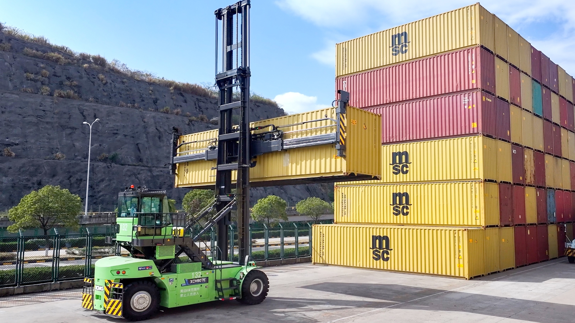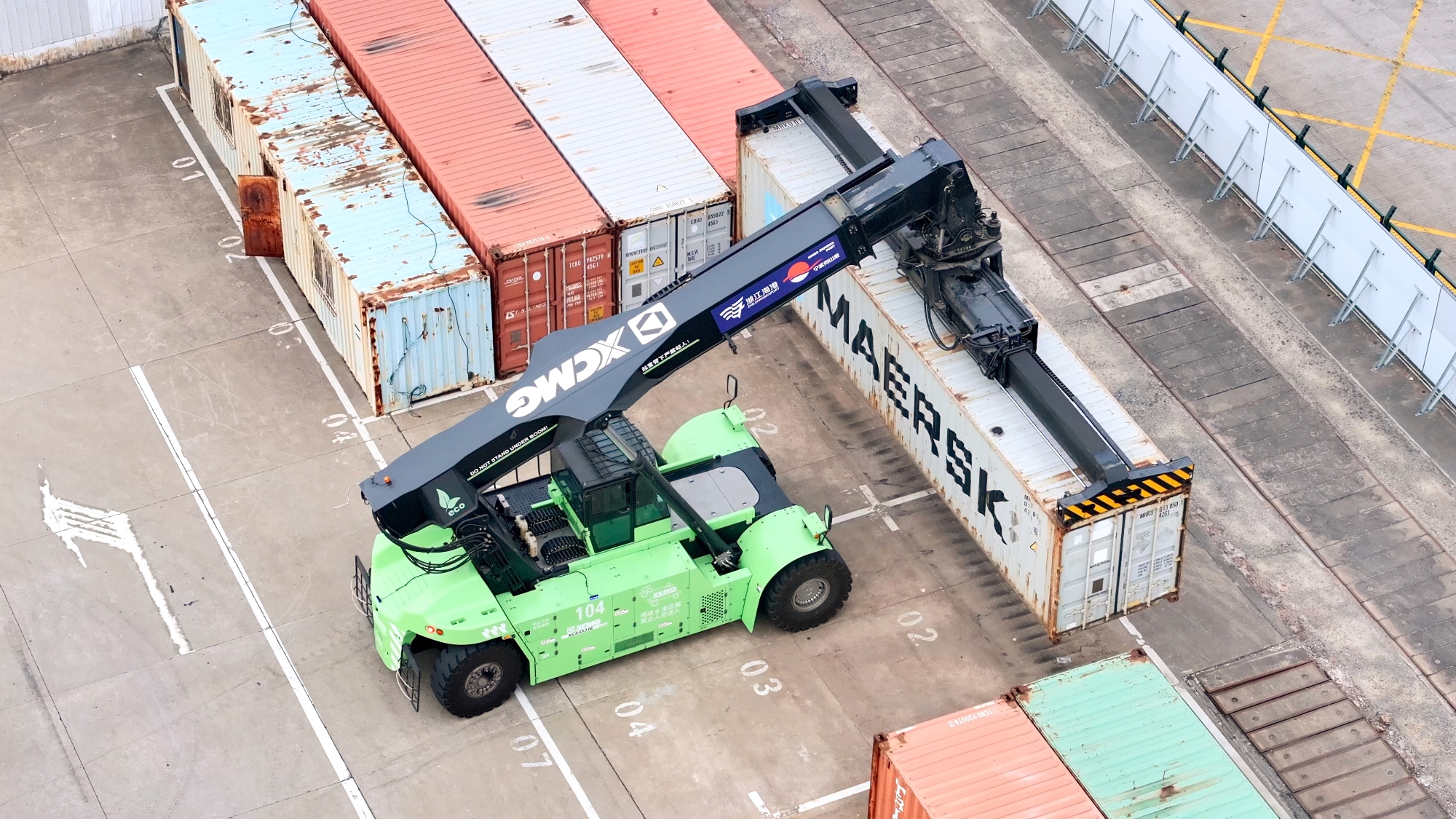 針對集裝箱堆存、轉運等核心場景,徐工打造了涵蓋電動正面吊、堆高機在內(nèi)的成套純電裝備矩陣。其中,領跑行業(yè)的電動堆高機,已成為高端綠色碼頭的標配。在浙江海港的多處關鍵作業(yè)前沿,這套方案正構建高效、協(xié)同的智慧作業(yè)新生態(tài)。