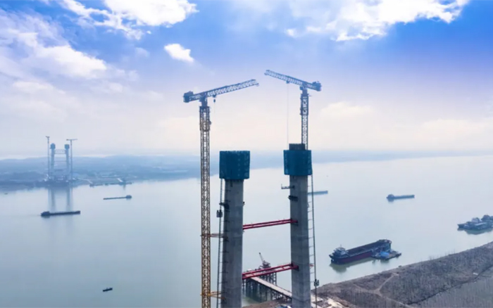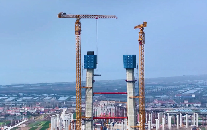 大橋主墩建設是整座大橋順利完工的“壓艙石”,大橋北主塔高度211.75米,采用主塔鋼筋部品整體吊裝。作為徐工超大塔中的明星產(chǎn)品,兩臺徐工XGT2230A-100S扛起大橋北主塔的施工重任。