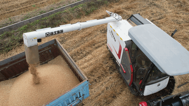 面對雨后潮濕泥濘的地面和田里倒伏的麥穗,徐工XR730收獲機(jī)憑借著底盤良好的通過性能和優(yōu)異的收割倒伏能力,一趟趟穿行在亟待收獲的麥田中,高效完成一畝又一畝夏糧搶收作業(yè)。