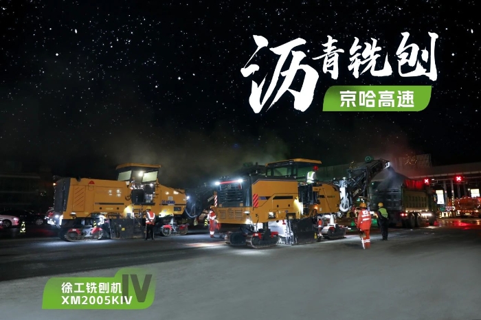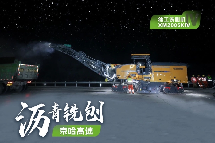 此次施工項目為京哈高速的路面改擴(kuò)建工程,銑刨深度5cm,銑刨速度25m/min。由于北京地區(qū)日間車流量大,交通壓力較大,因此施工方選擇在夜間施工,日間恢復(fù)行車,盡量避免施工給交通帶來影響。由于夜間施工更加考驗施工設(shè)備的穩(wěn)定性、施工質(zhì)量的可靠性,施工方選擇了兩臺徐工兩米銑刨機(jī)作為本次高速公路養(yǎng)護(hù)工程的銑刨設(shè)備,分別為XM2005KIV和XM200KII,同時進(jìn)行銑刨作業(yè),并肩作戰(zhàn),按下施工進(jìn)度快進(jìn)鍵。