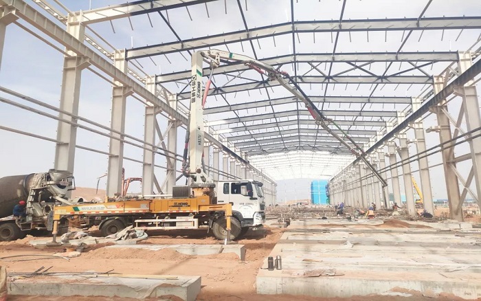 項(xiàng)目中后期以地面作業(yè)為主,鋼結(jié)構(gòu)廠房受限于空間操作,對(duì)設(shè)備的動(dòng)力和靈活提出了較高要求。最小起臂高度僅7.8米的徐工HB37V,靈活的通過性和操控性讓施工作業(yè)提質(zhì)增速,為項(xiàng)目施工破解難題。
