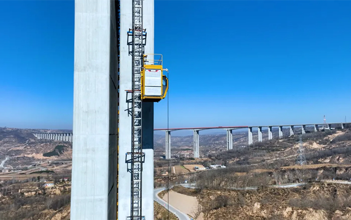 除了群塔助力,馬蓮河特大橋項(xiàng)目還使用了六臺徐工SC200/200FS1施工升降機(jī),零停機(jī)、零故障,整機(jī)性能優(yōu)越,應(yīng)用新型高可靠傳動機(jī)構(gòu)及高能效齒輪減速電機(jī),實(shí)現(xiàn)平穩(wěn)運(yùn)行,保障鋼筋、水泥等建筑材料運(yùn)輸安全,提高施工效率。