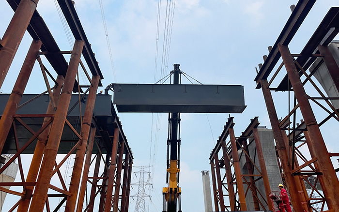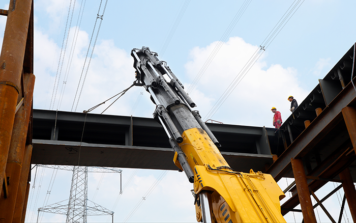 值得關注的是,施工匝道路段上方設有高壓電線,既要保證作業(yè)處于安全高度,又要確保施工平穩(wěn)高效,一般起重機無法介入施工。SQZ8000折疊臂起重機專為低矮、狹窄等空間受限工況,提供安全、穩(wěn)定、高效的設備轉運解決方案,成為本次施工的首選設備。