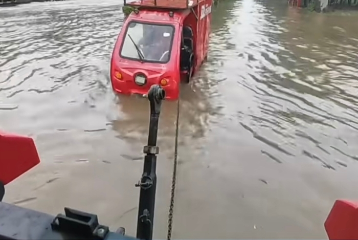 憑借產(chǎn)品動力強勁、牽引力大等優(yōu)勢,迅速幫助涉水車輛脫險。徐工拖拉機將部分受困車輛和物資轉(zhuǎn)移至安全地帶,為災(zāi)區(qū)人民提供了及時有效 的幫助。