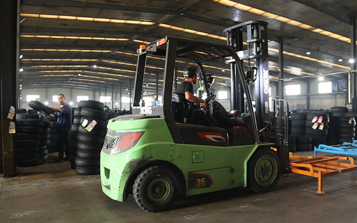 徐工孔雀系列電動平衡重叉車,具備精準(zhǔn)的操控性,能夠在狹窄的輪胎生產(chǎn)車間內(nèi)靈活穿梭,輕松完成各種搬運(yùn)任務(wù)。無論是搬運(yùn)原材料還是成品輪胎,都能做到高效準(zhǔn)確,大大提高了生產(chǎn)效率。