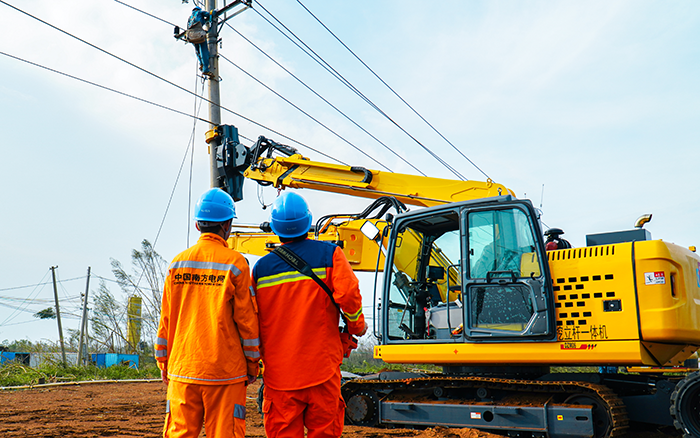 面對秋臺風“摩羯”的侵襲,廣東交通運輸部將臺風響應等級提升至一級。徐工開挖立桿一體機迎“風”而上,在廣東緊急開展抗災復電搶修工作,讓原本需要2臺挖機、10多名工作人員齊力拉線的工作變得安全“輕松”,大大降低了災后搶修的人身風險,保障當?shù)鼐用竦碾娏Π踩€(wěn)定供給。