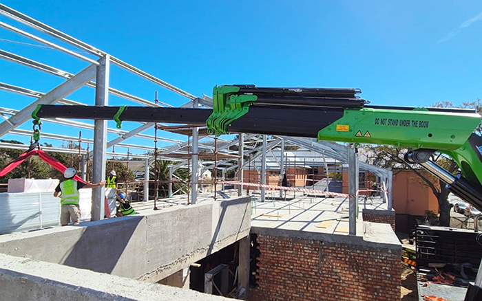 在海外某建筑工地現(xiàn)場(chǎng)可以看到,徐工GSQZ860折疊臂隨車(chē)起重機(jī)加裝兩節(jié)手動(dòng)臂,輕松跨越建筑物二樓復(fù)雜的鋼結(jié)構(gòu),完成了高處的物料轉(zhuǎn)運(yùn)作業(yè),優(yōu)越跨障能力和穩(wěn)定作業(yè)表現(xiàn)獲得了現(xiàn)場(chǎng)施工人員的認(rèn)可和好評(píng)。