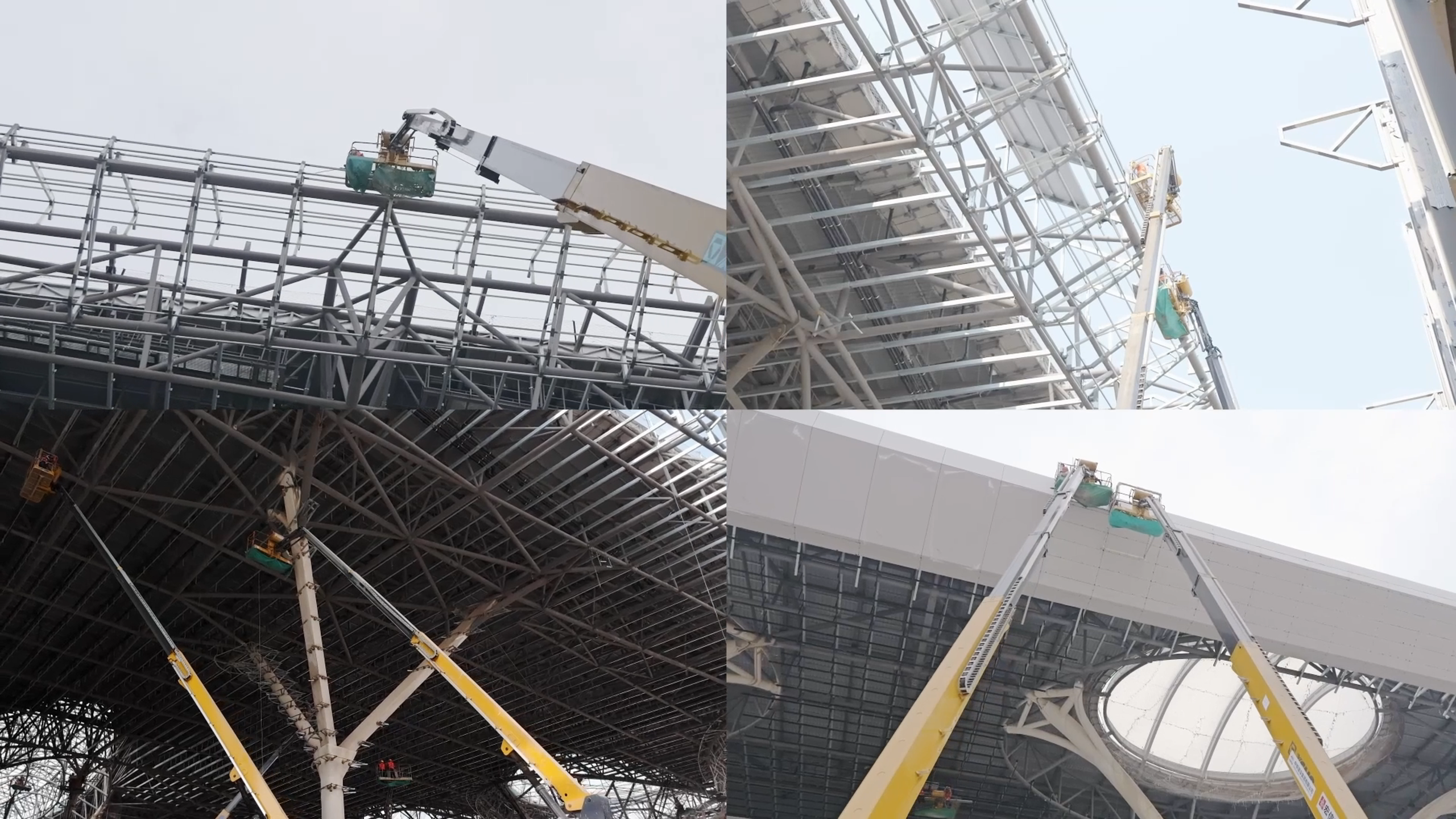 在重慶東站,十?dāng)?shù)臺(tái)高空作業(yè)平臺(tái)正在如火如荼的進(jìn)行鋼結(jié)構(gòu)的安裝工作,這些高空作業(yè)平臺(tái)作業(yè)精準(zhǔn)高效,動(dòng)作平穩(wěn)靈活,為施工工作節(jié)省了大量時(shí)間與人力成本。