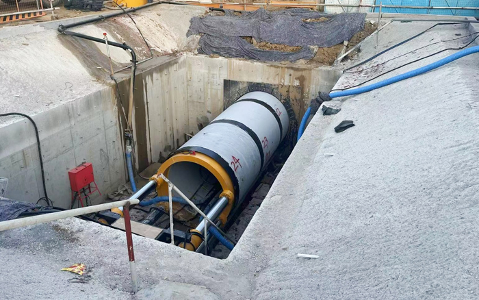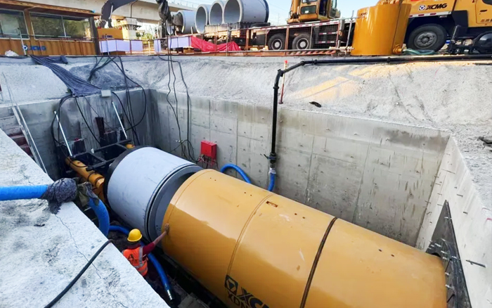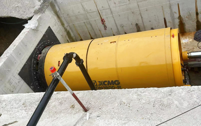 本次頂管穿越巖層為強風化片麻巖層,與上覆砂層最小厚度僅為1m,頂進時有較大塌方風險。為了確保頂管施工安全,客戶自行采購了國內(nèi)先進的徐工XDN1800-R“泥水平衡”巖石頂管設(shè)備。