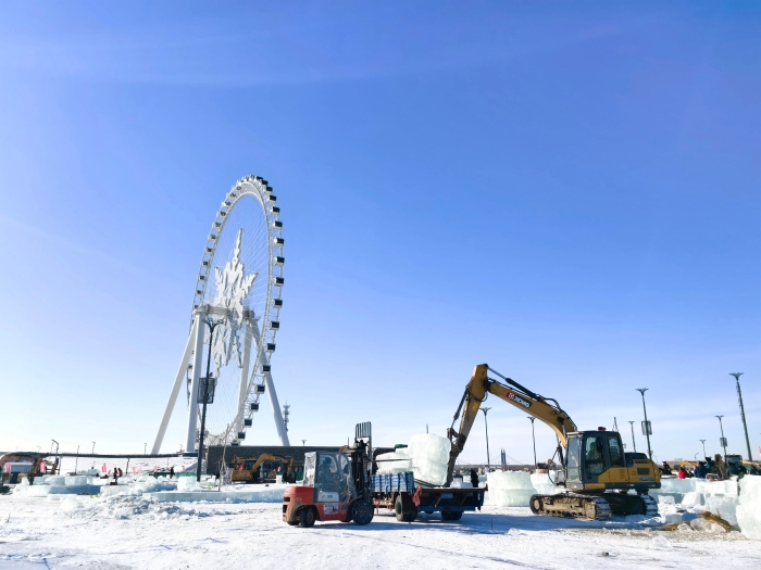 本屆哈爾濱冰雪大世界以“冰雪同夢(mèng) 亞洲同心”為主題,園區(qū)設(shè)計(jì)和建設(shè)充分融入2025年第九屆亞冬會(huì)元素,打造一座更加氣勢(shì)恢宏、美輪美奐的冰雪主題樂(lè)園。在這個(gè)以冰雪鑄造的王國(guó)中,徐工中小型挖掘機(jī)負(fù)責(zé)運(yùn)輸冰塊的重要工作,展現(xiàn)了它們力大無(wú)窮的一面。