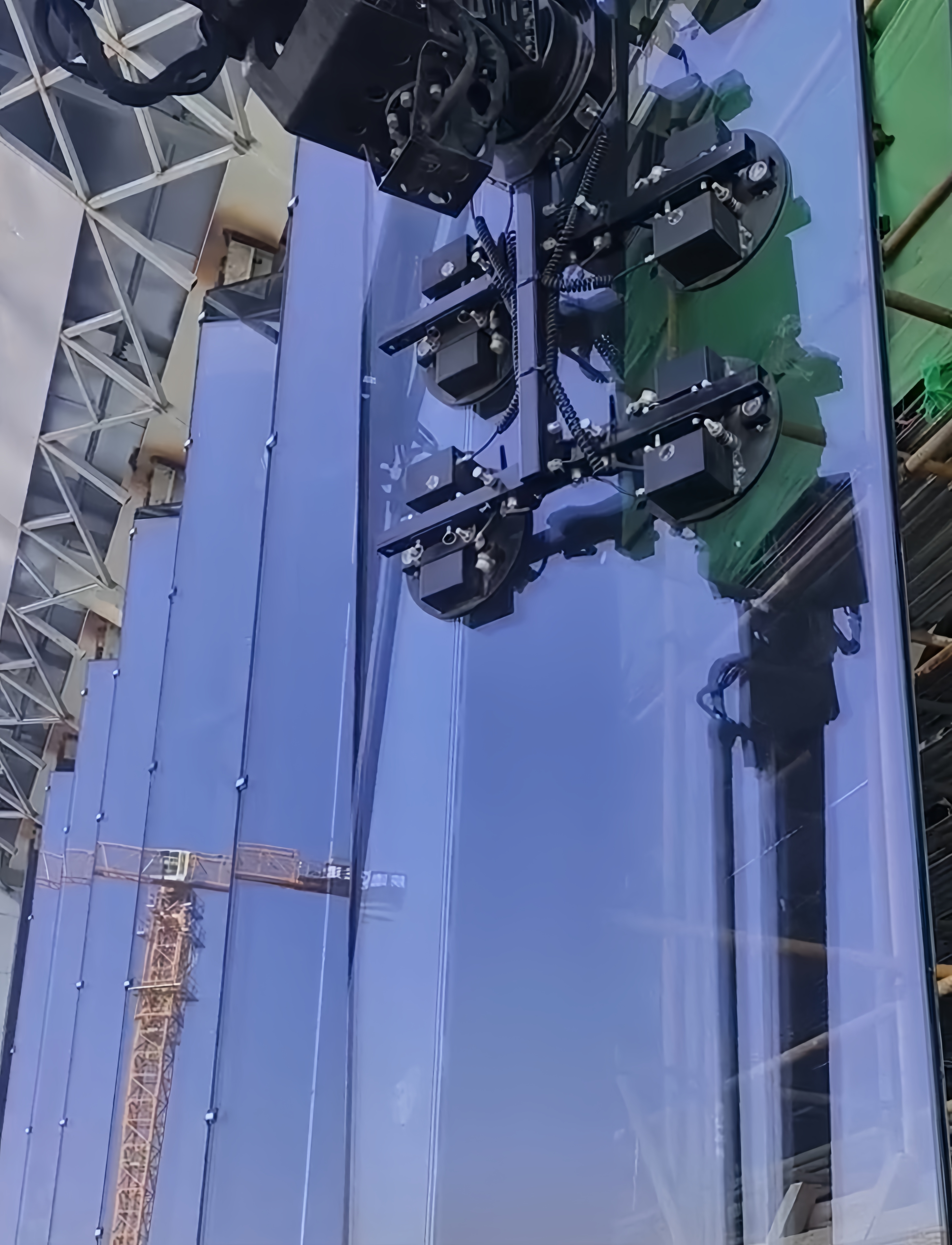 這是在西安大秦文化館玻璃幕墻安裝現(xiàn)場(chǎng)極其平常的一個(gè)場(chǎng)景,西安當(dāng)?shù)貙I(yíng)差異化設(shè)備的知名租賃商,在承接超大尺寸+超大重量的玻璃安裝時(shí),摒棄了傳統(tǒng)依賴大量的人工,輔以吊車吊裝、吊機(jī)等工具抬高作業(yè)的情況,也避免了因受力不均或碰撞,造成玻璃損壞帶來(lái)的高昂損失,保障了施工人員安全。