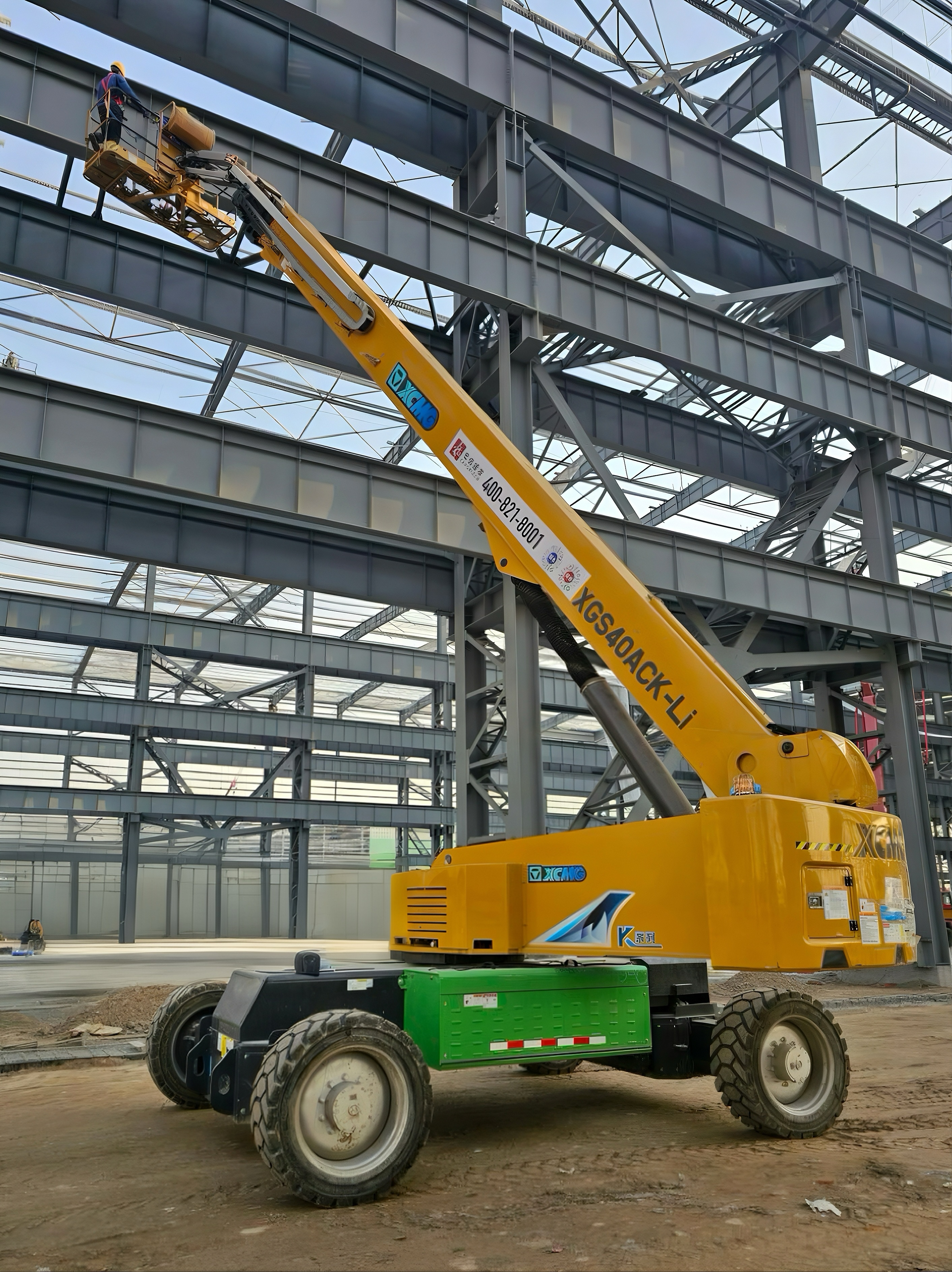 面對車間跨度大、作業(yè)面復(fù)雜等難題,兩臺產(chǎn)品展現(xiàn)超長臂展,精準(zhǔn)覆蓋高空盲區(qū),攻克了廠房鋼結(jié)構(gòu)焊接、頂棚管線鋪設(shè)等高難度施工挑戰(zhàn);低半徑轉(zhuǎn)彎的特性使車輛在廠房通道靈活穿梭,智能安全系統(tǒng)全程“護(hù)航”,大幅提高了施工作業(yè)效率。現(xiàn)場作業(yè)人員紛紛點(diǎn)贊:“電動化+高米數(shù)的組合,完美匹配智能化車間綠色、高效的施工需求!”