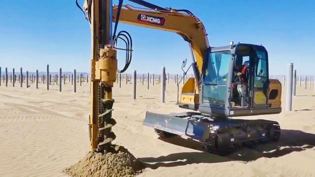 與以往常規(guī)項目不同,此次徐工挖掘機(jī)主要擔(dān)任光伏樁的鋪設(shè)工作,通過改裝振動錘和引孔機(jī)等多功能屬具,有效滿足現(xiàn)場多元化施工需求。