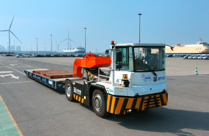 徐工通過攻克多項關鍵核心技術,打破國外同類產(chǎn)品技術封鎖,自主創(chuàng)新研發(fā)XPT150E超重載滾裝電動牽引車。