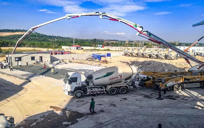 此外,數(shù)十臺徐工攪拌車也活躍在柬埔寨工業(yè)園區(qū),徐工 HB50V 為園區(qū)基礎(chǔ)地坪地面建設(shè)施工按下 “加速鍵”。
