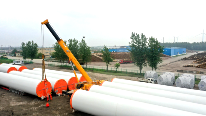 在繁忙的港口,長40米、重100噸的風(fēng)力發(fā)電塔筒擺放整齊,等待著一次關(guān)鍵的騰挪,吊裝空間局促——塔筒擺放距離較近,蕩距空間嚴(yán)重受限,這是對起重機(jī)性能與操控的極致考驗(yàn)。徐工G2代起重機(jī)XCA200G8-1從容入場,以實(shí)力宣告:空間,絕非限制。