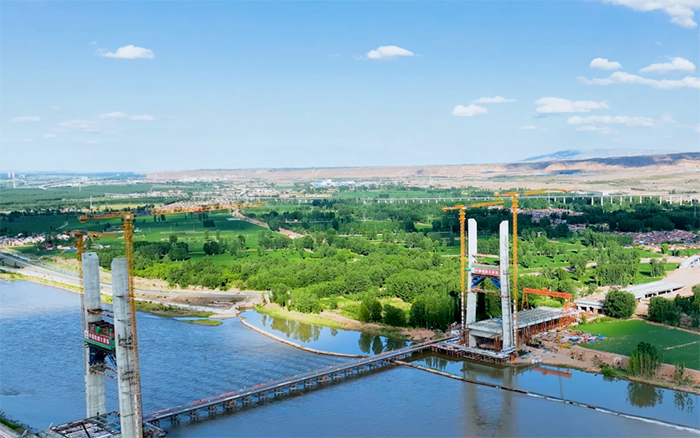 中衛(wèi)下河沿黃河公路大橋全長1228米,主塔高113米,相當于40層樓高,是目前寧夏單跨跨徑最長、樁基最深、樁徑最粗、承臺混凝土量最大、主塔最高的斜拉橋,單體施工體量為寧夏橋梁建設(shè)史上之最。