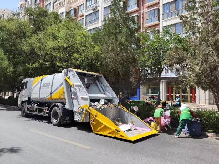瓜州縣城區(qū)日均產(chǎn)生生活垃圾超120噸,其中60%集中于老舊小區(qū)與商業(yè)街區(qū)。徐工壓縮車(chē)采用雙向壓縮技術(shù),通過(guò)“刮板-滑板”聯(lián)動(dòng)系統(tǒng)實(shí)現(xiàn)垃圾的破碎、壓縮與填裝一體化作業(yè)。在淵泉鎮(zhèn)郵電巷社區(qū),設(shè)備單次裝載僅需14秒,同等車(chē)廂容積下垃圾裝載量提升20%,輕松應(yīng)對(duì)高峰時(shí)段的桶裝、袋裝垃圾集中收運(yùn)需求。