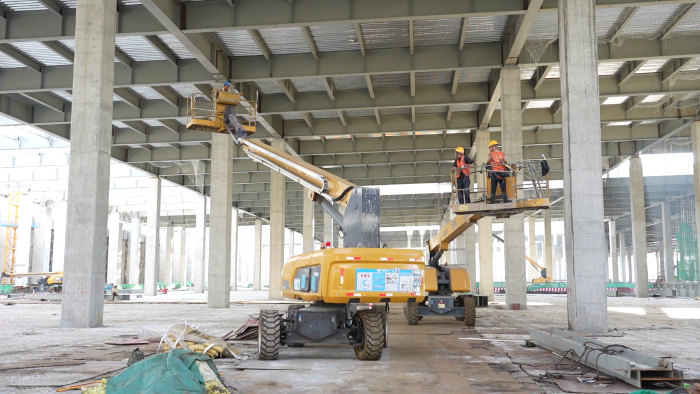 近日,在總投資550億的合肥國顯第8.6代AMOLED生產(chǎn)線項(xiàng)目主廠房內(nèi),20余臺徐工高空作業(yè)平臺在酷暑烈日下,呈現(xiàn)了一場精彩的“群車協(xié)奏”。