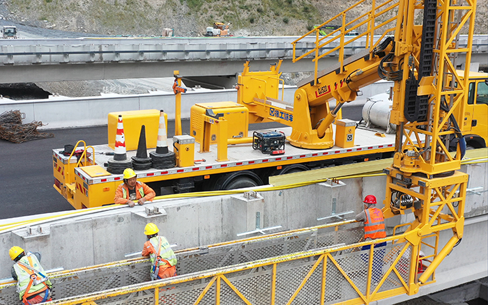 復(fù)雜地質(zhì)構(gòu)造曾讓傳統(tǒng)施工因落石、涌水屢屢受阻,而徐工橋檢車的桁架能輕松跨越數(shù)米寬裂隙區(qū),讓 “卡脖子” 地帶變 “加速帶”。