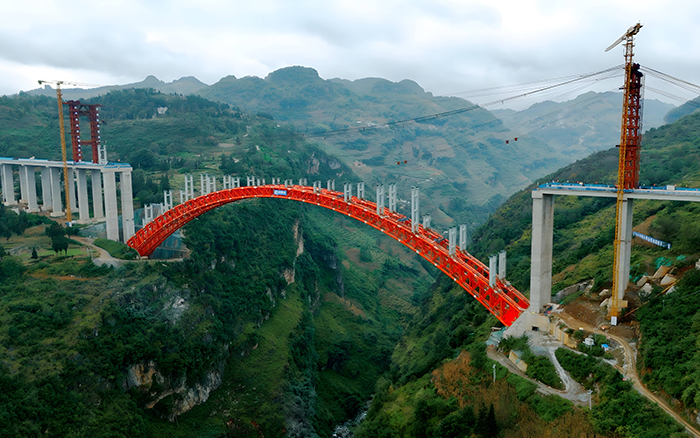 近日,納晴高速白水河特大橋的主拱圈管內(nèi)混凝土灌注已順利完成,全橋施工進度已達到85%。