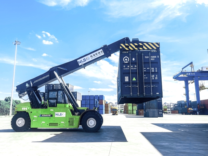 在西部陸海新通道某國(guó)際陸港樞紐,新交付的徐工XCS4531E3電動(dòng)正面吊高效投入集裝箱轉(zhuǎn)運(yùn)作業(yè),成為該樞紐綠色升級(jí)的核心動(dòng)力。