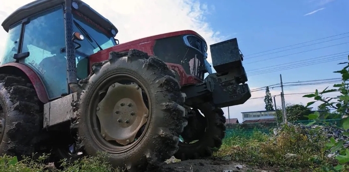 這臺機子配置高的很:用的大底盤,動力輸出軸也是加固強化過的,而且它標(biāo)的是80匹馬力,實際藏著30%的儲備動力,可以達到90匹馬力,就算半個輪胎陷進去,也能輕松開出來,在水田這種復(fù)雜地方,是真省心。
