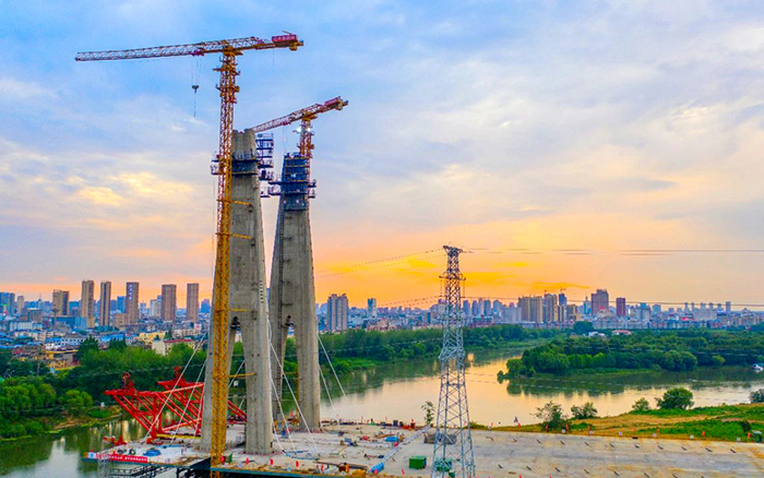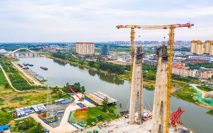 此次參建的項目是阜裕大橋項目,主要承接橋梁主塔的吊裝任務(wù)。阜裕大橋全長1735米,橋梁長1127米,主橋采用獨塔斜拉橋結(jié)構(gòu),主塔高95.6米,主橋斷面為60米超寬幅鋼箱梁,是國內(nèi)市政最寬鋼箱梁橋,建成后將成為阜陽的又一個“新地標(biāo)”。