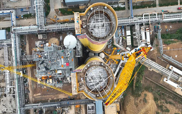 此次吊裝的高塔是化工廠的“心臟”設備,施工難度堪比“在高空拼樂高”,吊裝主要任務為直徑30米、重量達47噸的圓形橫梁鋼構,需在小狹小空間一次性就位,精準“落座”120米高塔頂部,吊裝誤差需控制在±5毫米內,否則將直接影響后續(xù)設備密封性能與運行安全。