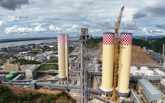 作業(yè)過程中,徐工 XGL3300-220S先將圓形橫梁鋼構提升至130多米高度,越過塔筒,在塔頂區(qū)域通過多次微幅旋轉調整,最終穩(wěn)穩(wěn)下沉,與造粒塔上部預埋支座精準對接。