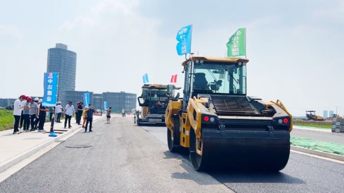常熟高新區(qū)昆承路道路工程進入瀝青施工關(guān)鍵階段,中億豐城建成功應(yīng)用無人數(shù)字化智能攤鋪技術(shù),提升了攤鋪均勻性、壓實度和平整度,保障了施工質(zhì)量,并承辦了該項目的觀摩活動。