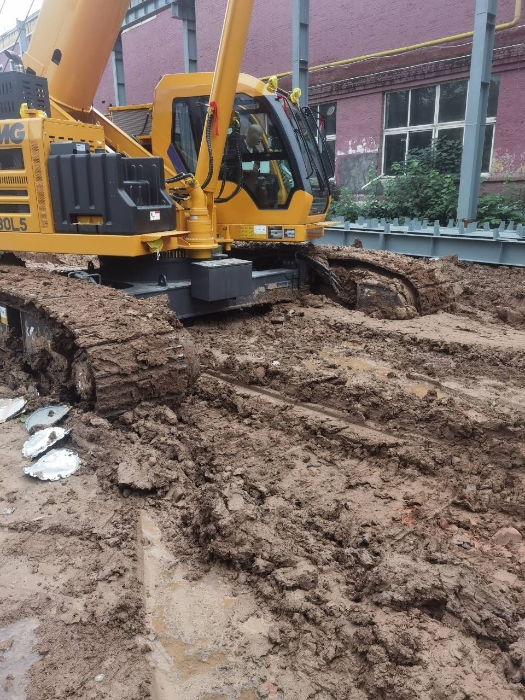 在絕大多數(shù)設(shè)備望而卻步的深水泥濘場(chǎng)地上,一座鋼結(jié)構(gòu)的廠房正拔地而起。這背后,徐工XGTC30L5(30噸級(jí))伸縮臂履帶起重機(jī),正以卓越的性能,將施工困境變?yōu)檎蔑@實(shí)力的舞臺(tái)。