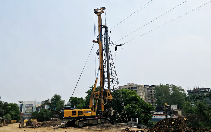 此項目樁徑為900mm,樁深25m,使用徐工XR240I施工平均3.5h可以完成一根樁孔。前11m土層只需要0.5h即可完成,11m–25m為碎石與中風化地層,平均施工效率4.4m/h。使客戶每班輕松完成3根樁的指標。