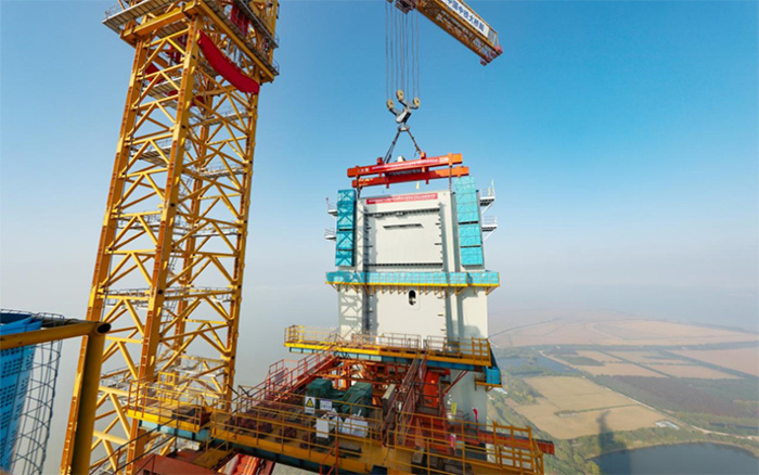 從北航道橋南北錨碇封底,到數(shù)十個(gè)大型鋼塔節(jié)段的精準(zhǔn)吊裝,再到北主塔塔柱主體工程圓滿(mǎn)完工,徐工XGT15000-600S始終以“穩(wěn)扎穩(wěn)打、精工致微”的卓越表現(xiàn),持續(xù)提升主塔建設(shè)效率與作業(yè)可靠性,見(jiàn)證著這座世界級(jí)大橋主塔節(jié)節(jié)攀升。
