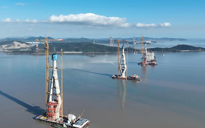 在青龍門大橋建設(shè)中,主塔毫米級(jí)精準(zhǔn)控制與海上超高結(jié)構(gòu)吊裝成為關(guān)鍵難題。