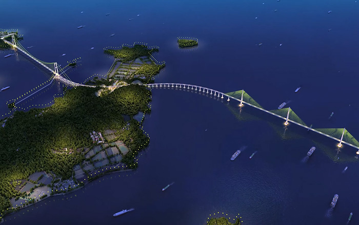 東海之濱,長(zhǎng)虹臥波。大橋建成后,將直接改善舟山南翼群島的對(duì)外交通條件,對(duì)優(yōu)化舟山群島新區(qū)空間布局、打造現(xiàn)代海洋產(chǎn)業(yè)基地具有關(guān)鍵作用。