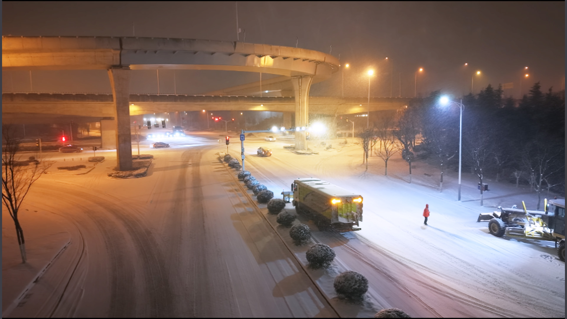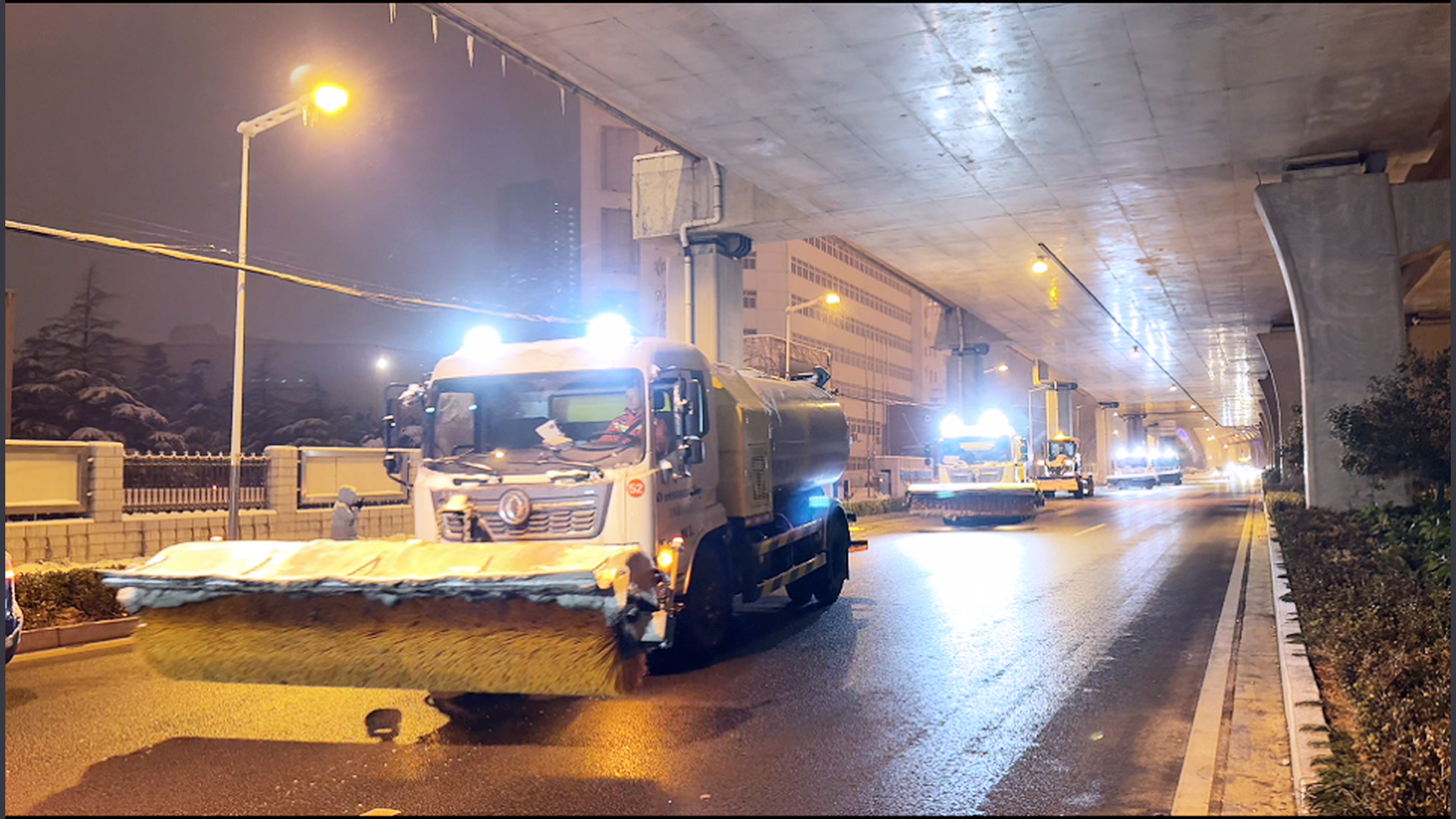 1月20日0點,徐工除雪設備和救援隊在徐州東三環(huán)快速路集結,對整條三環(huán)高架道路除雪,保障清晨的正常通行。