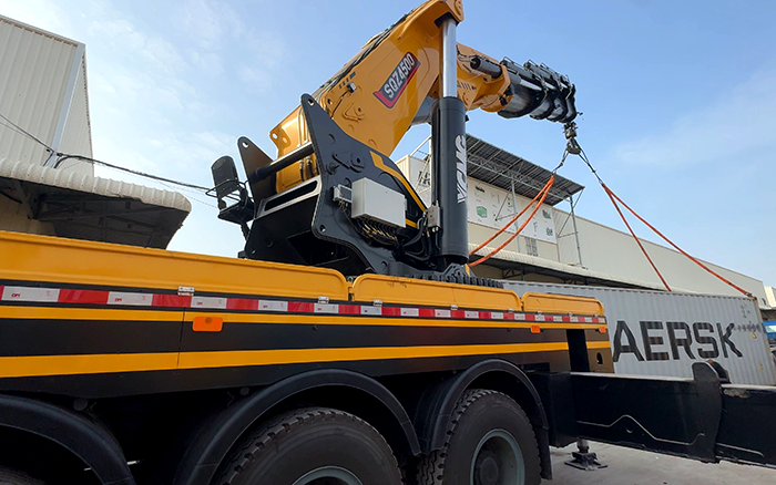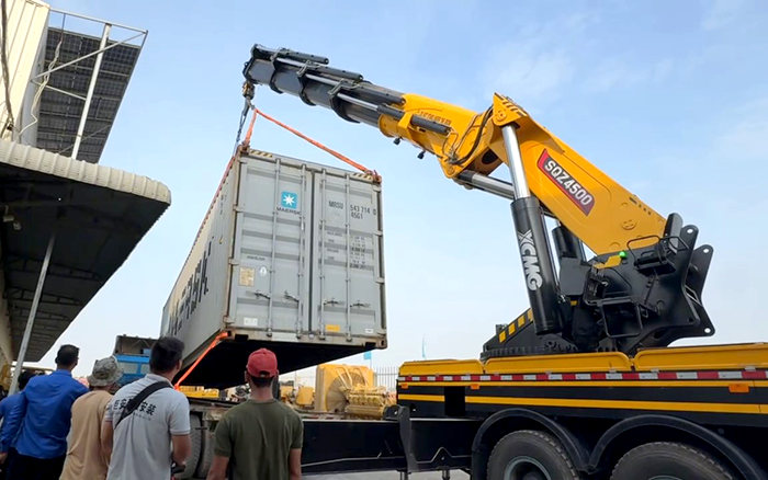 涼季東南亞,某碼頭貨箱錯落排布。徐工 SQZ4500C 折疊臂起重機(jī)靜靜佇立,伸展臂架,開啟一天的集裝箱轉(zhuǎn)運作業(yè)。