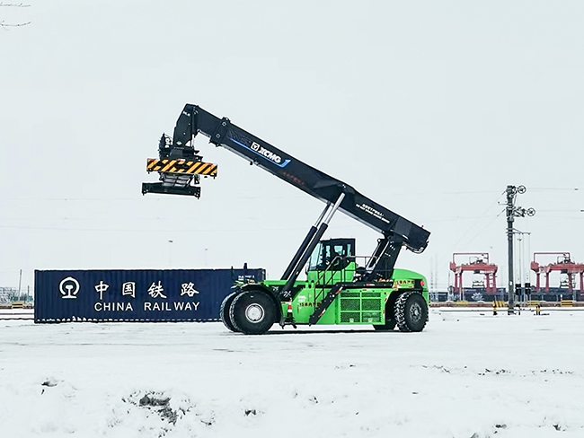 徐工純電動(dòng)正面吊創(chuàng)新應(yīng)用全域智能溫控平臺(tái),通過(guò)電池包智能檢測(cè)與液壓系統(tǒng)低溫自適應(yīng)策略,即使在-40℃以下的嚴(yán)寒環(huán)境中,仍能保持動(dòng)力系統(tǒng)高效輸出。